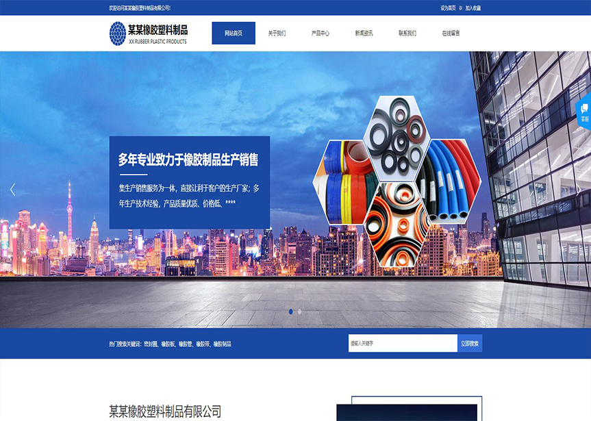 模板名稱(chēng):(帶手機(jī)版數(shù)據(jù)同步)自適應(yīng)橡膠塑料制品藍(lán)色網(wǎng)站模板