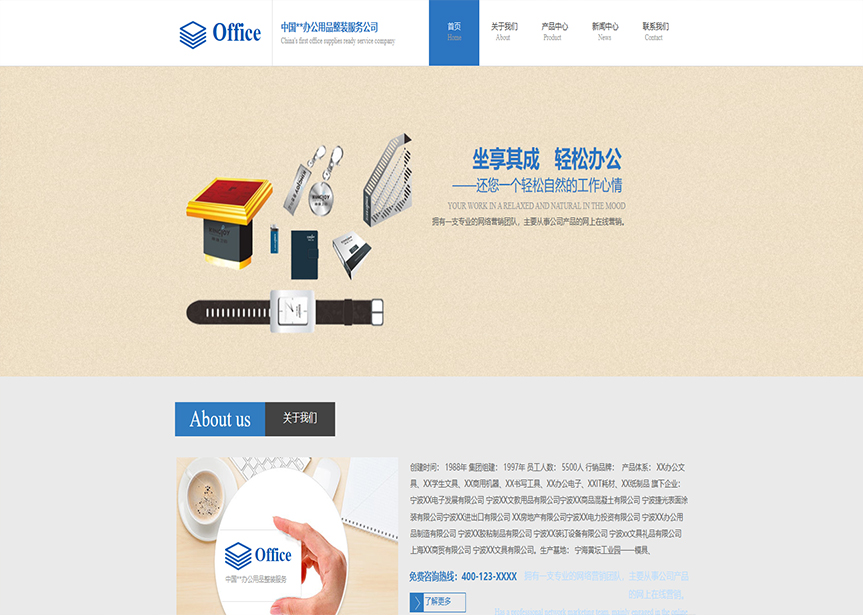 模板名稱:(帶手機(jī)版數(shù)據(jù)同步)自適應(yīng)辦公用品類藍(lán)色通用網(wǎng)站模板