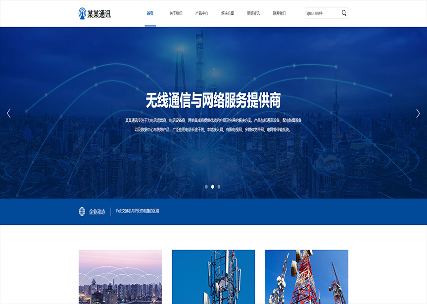 模板名稱:(帶手機版數據同步)自適應通訊數碼類藍色通用網站模板