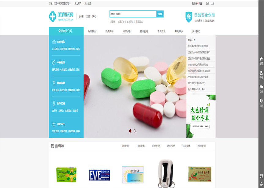 模板名稱:(帶手機(jī)版數(shù)據(jù)同步)自適應(yīng)商城類醫(yī)藥商城通用網(wǎng)站模板