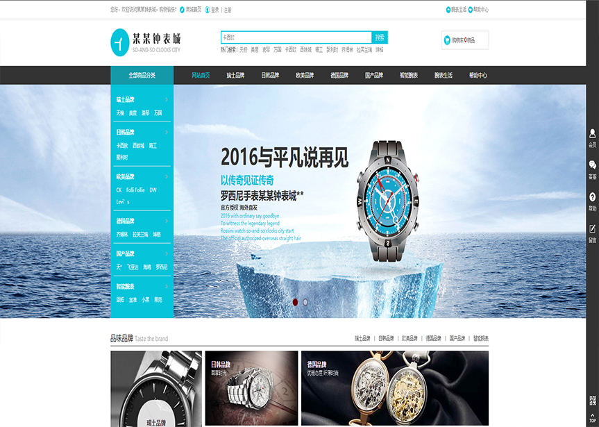 網站模板名稱:(帶手機版數據同步)自適應商城類鐘表商城通用網站模板
