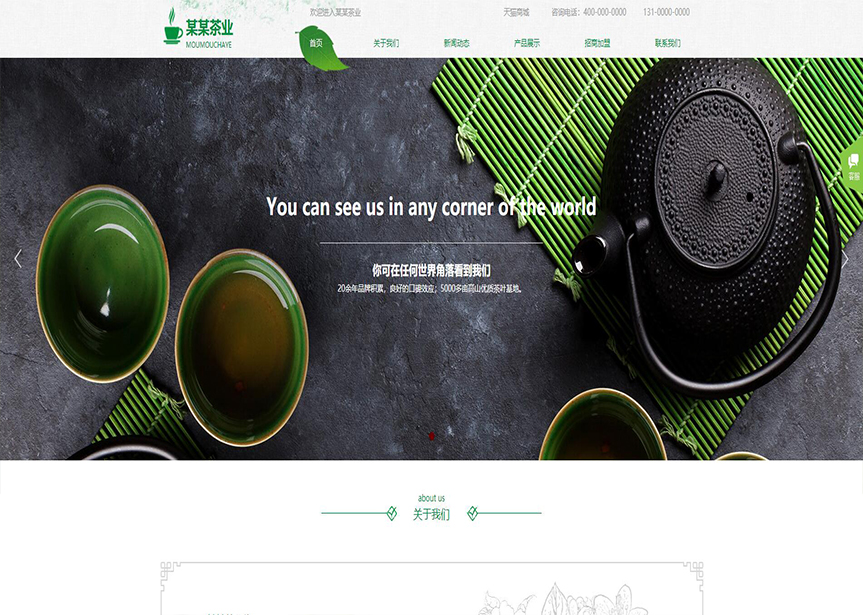 模板名稱:(帶手機版數據同步)自適應茶葉類綠色網站模板